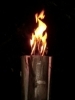 うちわで一生懸命に扇ぐと大きな炎が揺ゆらめき始めます。