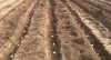 60~70cm間隔の畝に、深さ15cmの溝を掘ります。そこに、30cmに1個の割合で、芽を上にして、種イモを置きます。種イモと種イモの間に、堆肥一掴みと化成肥料を少々置き、7~8cmの深さに覆土します。種イモは肥料にあたると腐りやすいので、注意が必要です。水やりはしません。