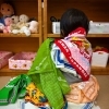 ぐるぐる巻き【手ぶら登園・オムツ使い放題・共働き・園児募集・パパママ応援・ワーママ・保活・土曜保育・0歳児・1歳児・2歳児・産休明け・狭山市保育園探し・仕事復帰・狭山市・入間市・所沢市・川越市・飯能市・日高市】おひるねごっこ? おひめさまごっこ? ぐるぐるにまきつけて なにするのかな〜☺️☺️2025/02/17